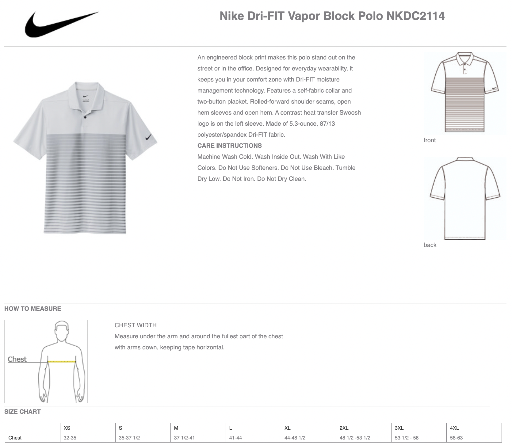 - 5.3-ounce, 87/13 polyester/spandex Dri-FIT fabric