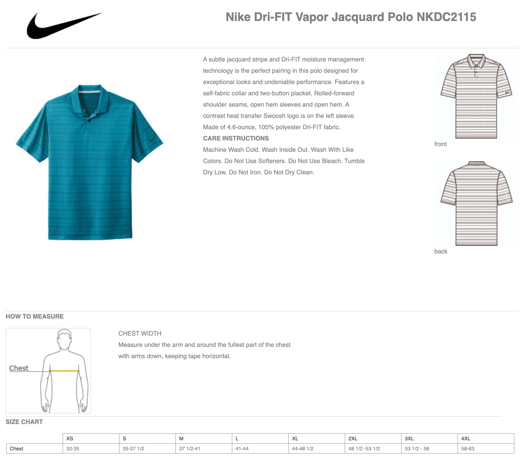 • 5.3-ounce, 87/13 polyester/spandex Dri-FIT fabric